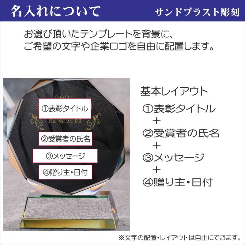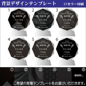 クリスタルの表面に文字を彫刻し、裏面は黒を基調とした上品な仕上がり。
