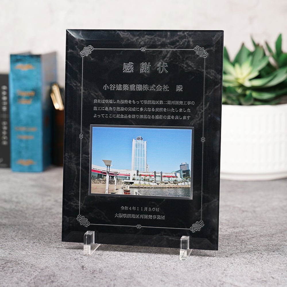 ・厚みのある楯に写真を入れられる、重厚感のある表彰楯