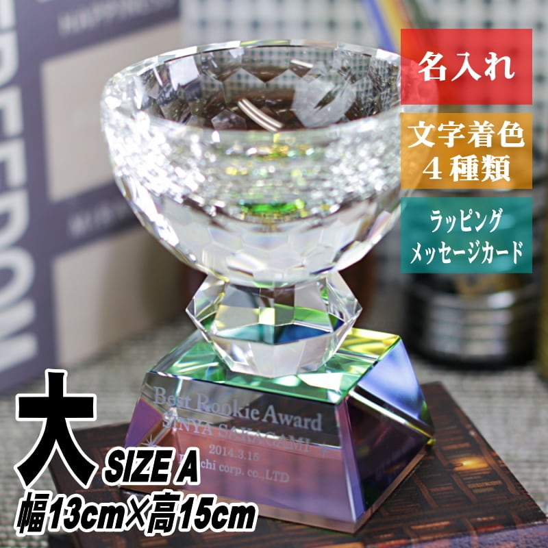 ・ダイヤカットが美しく輝く、カップ形のクリスタルトロフィーです。