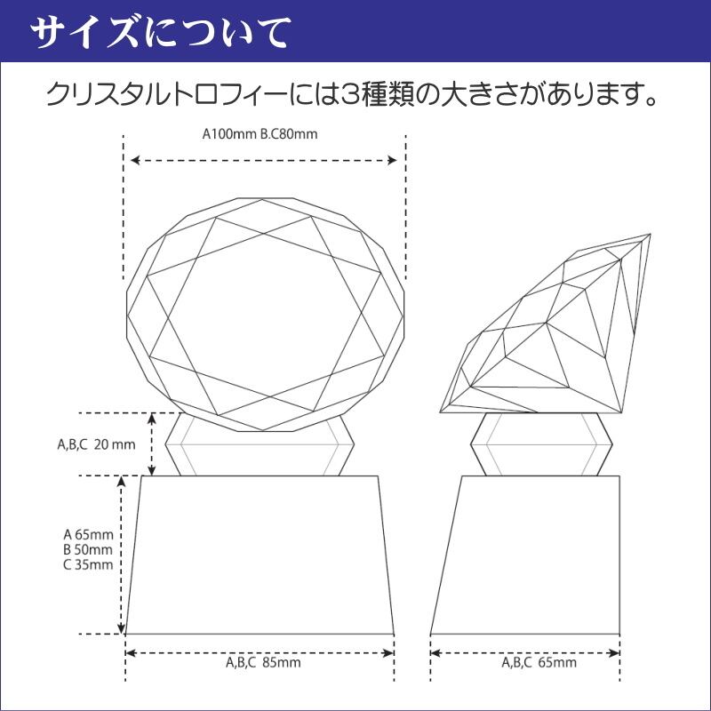 ・クリスタルダイヤモンドにロゴマークや優勝などの文字を加工できるトロフィーです。