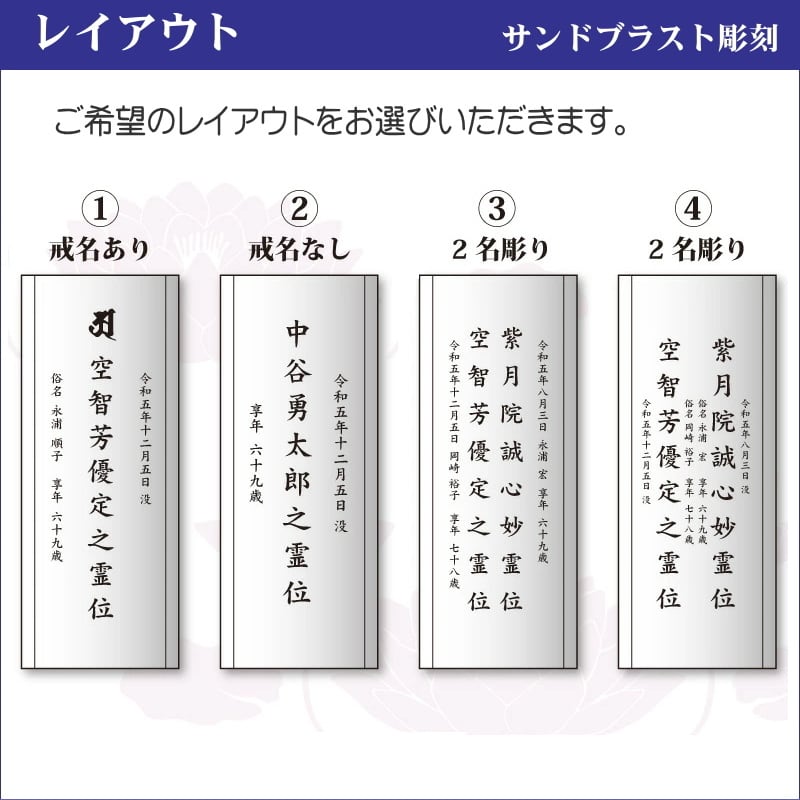 ※ご注文後にお客様と当店スタッフとで彫刻原稿のやりとりを行い、最終原稿の図面をご確認頂き、お客様のご了承をいただき次第、商品の発送となります。