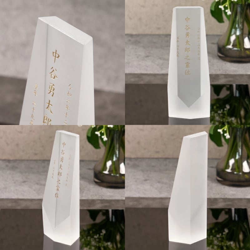 ・日本の職人が手作業で一点一点丁寧にカットし研磨されたクリスタルガラスに、心を込めて戒名を彫刻しています。