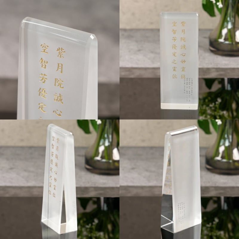 ・日本の職人が手作業で一点一点丁寧にカットし研磨されたクリスタルガラスに、心を込めて戒名を彫刻しています。