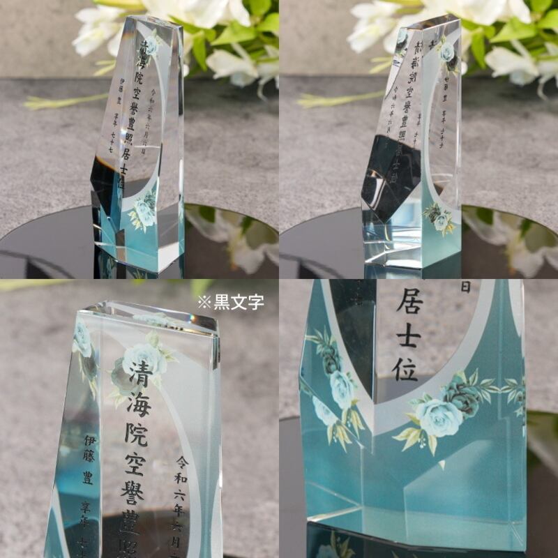 ・日本の職人が手作業で一点一点丁寧にカットし研磨されたクリスタルガラスに、心を込めて戒名を彫刻しています。