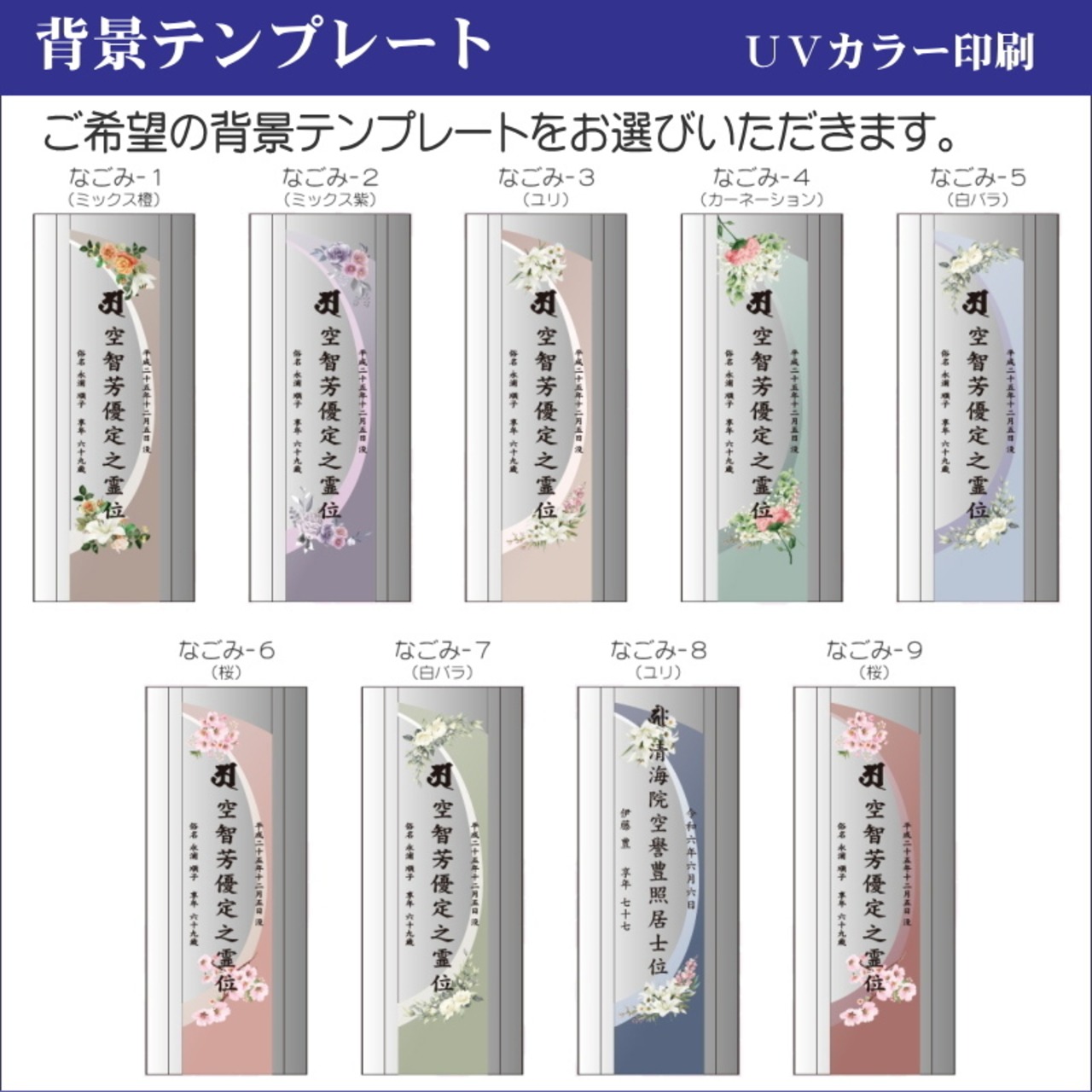 ・淡くナチュラルなフラワー柄と彫刻を引き立てる金銀黒白の着色を組み合わせた美しいお位牌です。