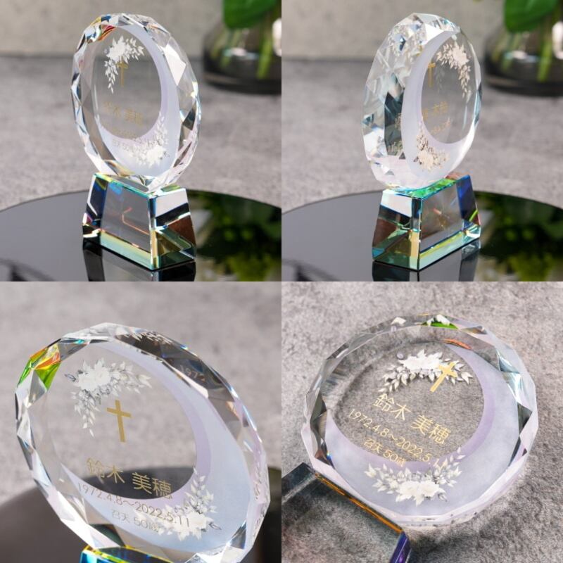 ・日本の職人が手作業で一点一点丁寧にカットし研磨されたクリスタルガラスに、心を込めて戒名を彫刻しています。