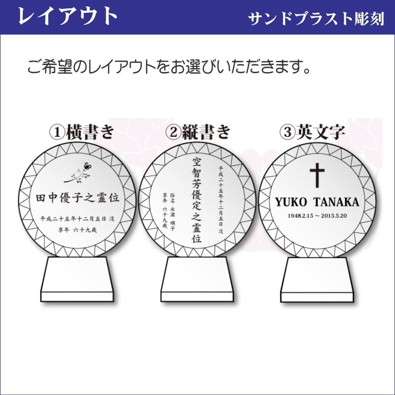 ※ご注文後にお客様と当店スタッフとで彫刻原稿のやりとりを行い、最終原稿の図面をご確認頂き、お客様のご了承をいただき次第、商品の発送となります。