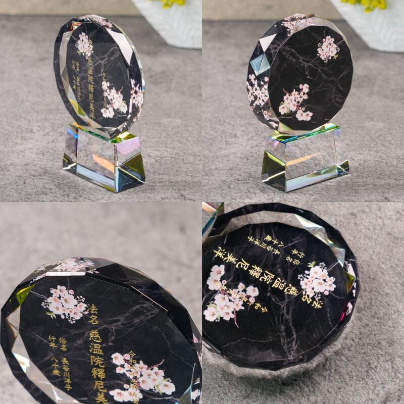 ・日本の職人が手作業で一点一点丁寧にカットし研磨されたクリスタルガラスに、心を込めて戒名を彫刻しています。
