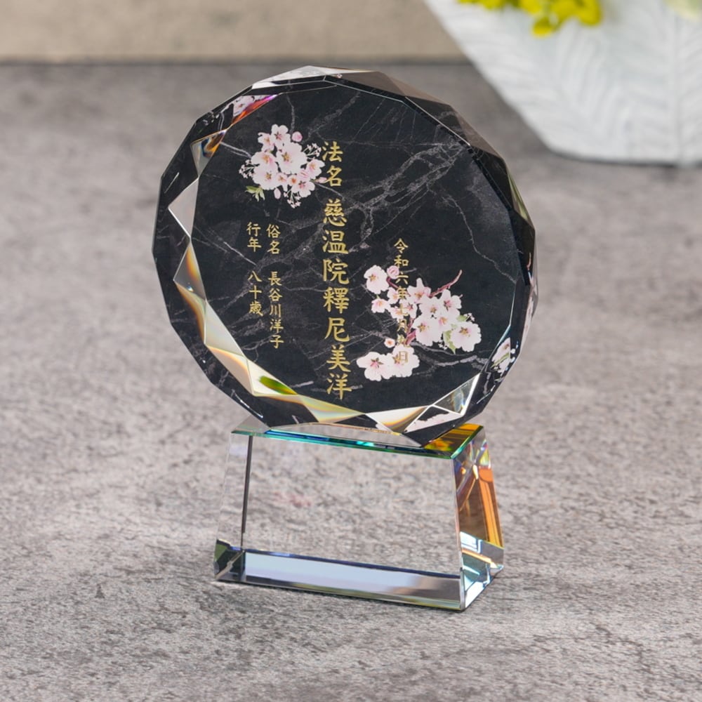 ・日本の職人が手作業で一点一点丁寧にカットし研磨されたクリスタルガラスに、心を込めて戒名を彫刻しています。