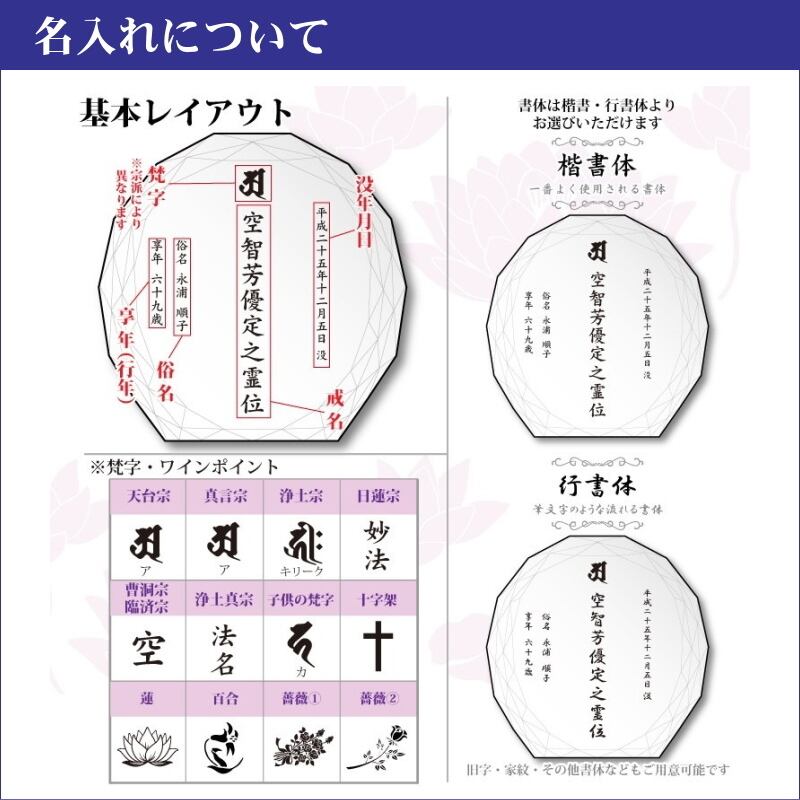 ・日本の職人が手作業で一点一点丁寧にカットし研磨されたクリスタルガラスに、心を込めて戒名を彫刻しています。