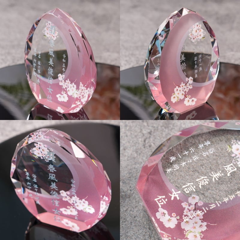 ・戒名やお名前は、日本の職人が一点一点丁寧に手作業でカット・研磨されたクリスタルに、心を込めて彫刻いたします。