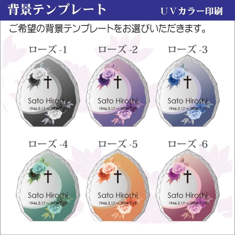 ・淡くナチュラルなローズ柄と彫刻を美しく引き立てる金・銀・黒・白の着色を組み合わせた、上品で高級感あふれるクリスタル位牌「穏花(おんか)」です。