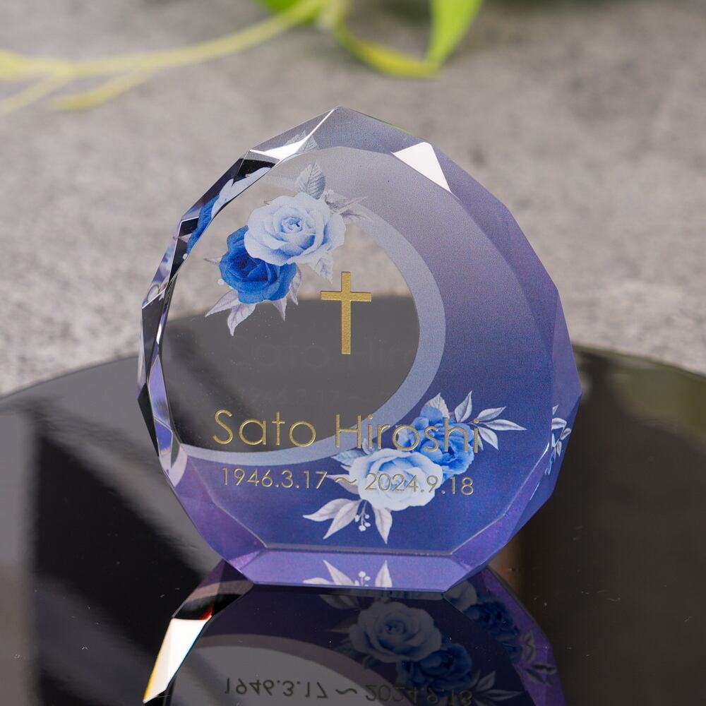 ・透明感のあるクリスタルガラスに繊細な柄が施され、光を受けるたびに優しく輝き、故人がそばにいるかのような安らぎの空間を演出します。