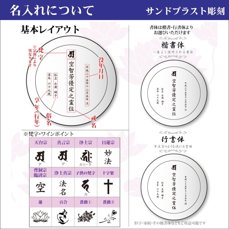 ※ご注文後にお客様と当店スタッフとで彫刻原稿のやりとりを行い、最終原稿の図面をご確認頂き、お客様のご了承をいただき次第、商品の発送となります。