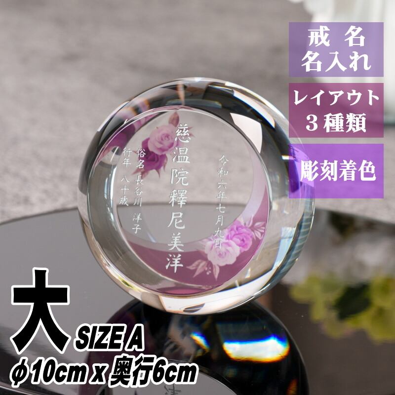 ・淡くナチュラルなローズ柄と彫刻を美しく引き立てる金・銀・黒・白の着色を組み合わせた、上品で高級感あふれるクリスタル位牌「穏花(おんか)」です。