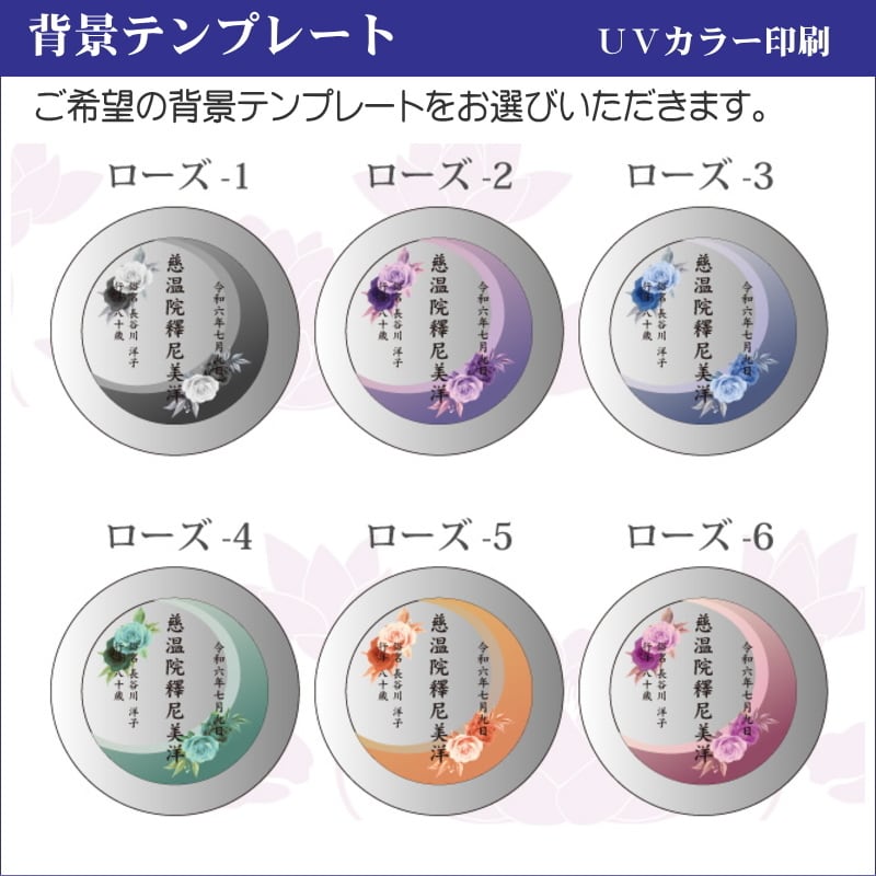 ・淡くナチュラルなローズ柄と彫刻を美しく引き立てる金・銀・黒・白の着色を組み合わせた、上品で高級感あふれるクリスタル位牌「穏花(おんか)」です。