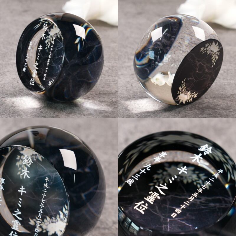 ・戒名やお名前は、日本の職人が一点一点丁寧に手作業でカット・研磨されたクリスタルに、心を込めて彫刻いたします。