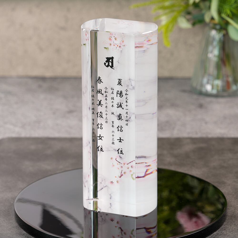 ・戒名やお名前は、日本の職人が一点一点丁寧に手作業でカット・研磨されたクリスタルに、心を込めて彫刻いたします。