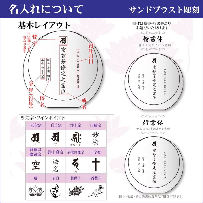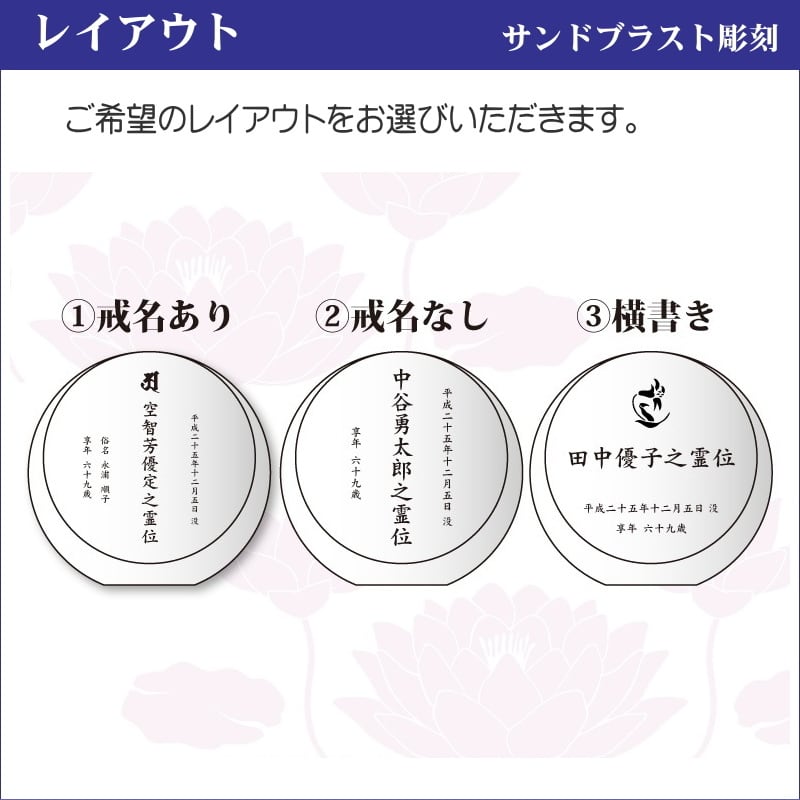 ※ご注文後にお客様と当店スタッフとで彫刻原稿のやりとりを行い、最終原稿の図面をご確認頂き、お客様のご了承をいただき次第、商品の発送となります。