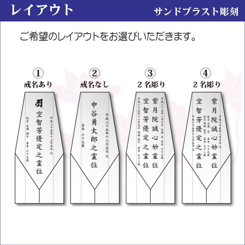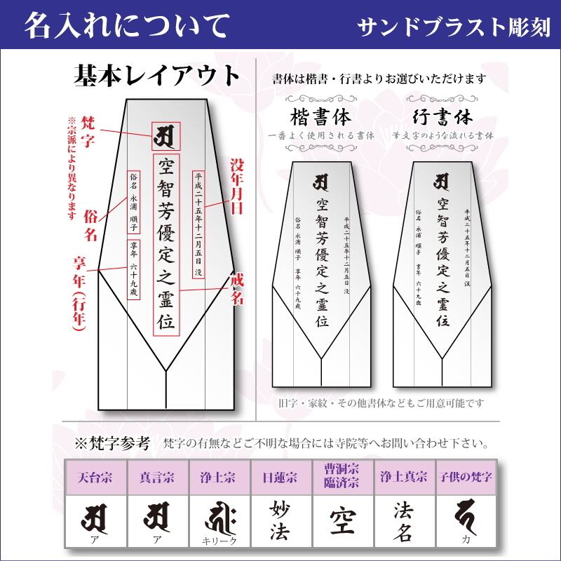 ※ご注文後にお客様と当店スタッフとで彫刻原稿のやりとりを行い、最終原稿の図面をご確認頂き、お客様のご了承をいただき次第、商品の発送となります。