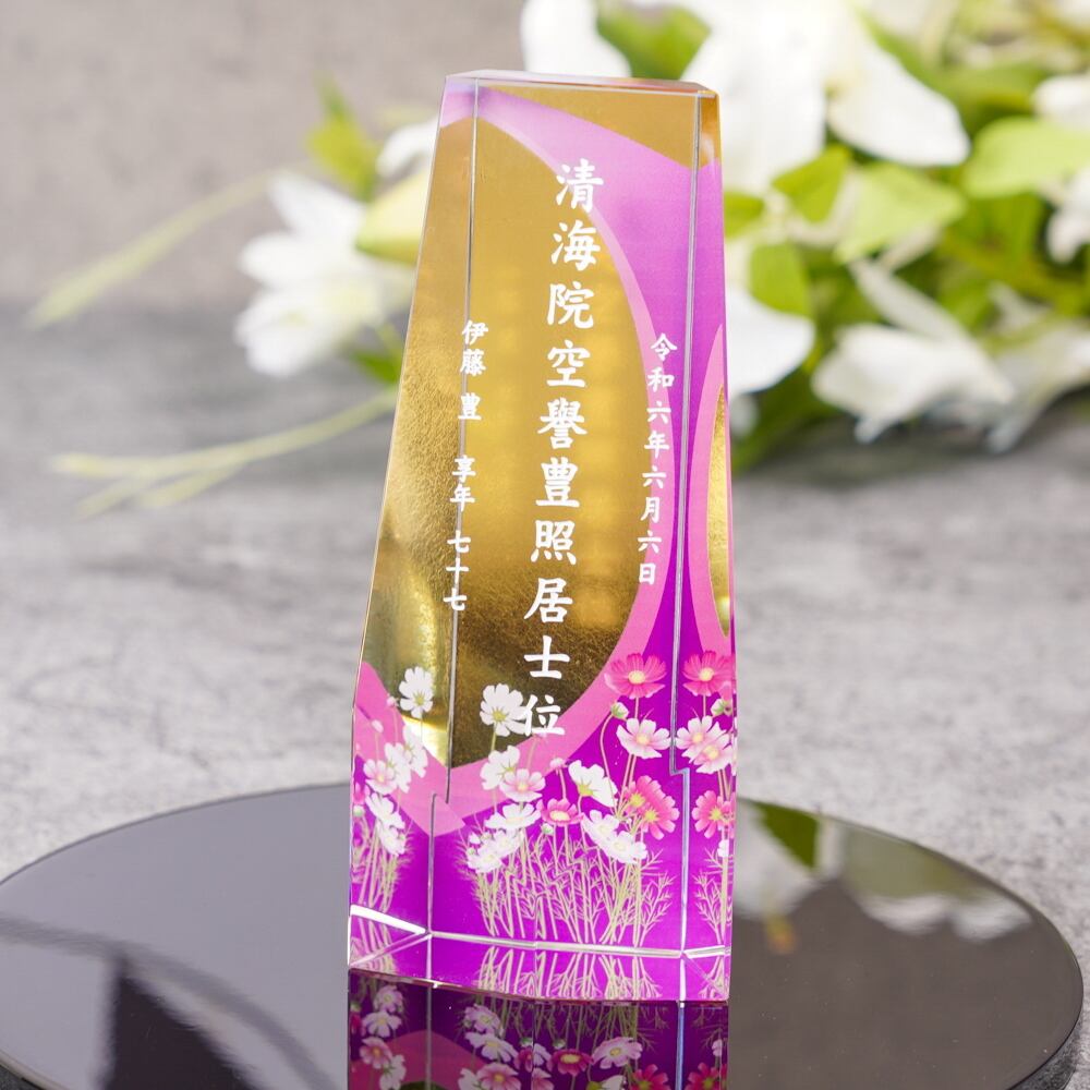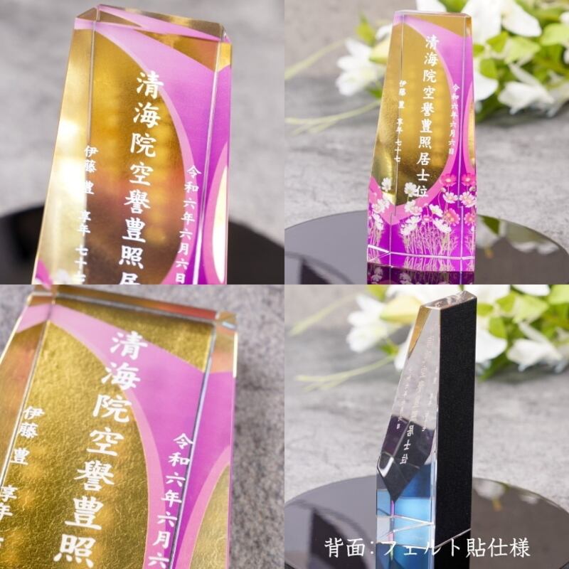 ・日本の職人が手作業で一点一点丁寧にカットし研磨されたクリスタルガラスに、心を込めて戒名を彫刻しています。