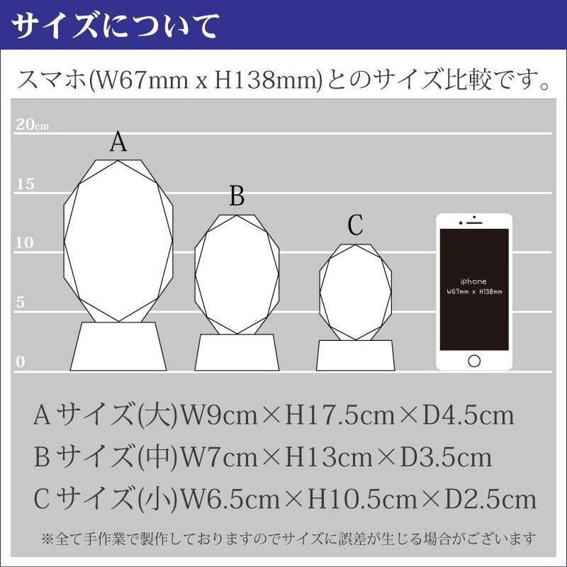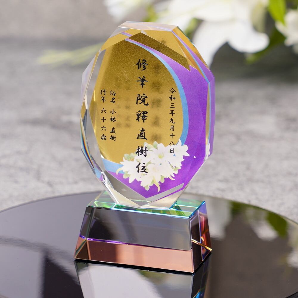 ・日本の職人が手作業で一点一点丁寧にカットし研磨されたクリスタルガラスに、心を込めて戒名を彫刻しています。