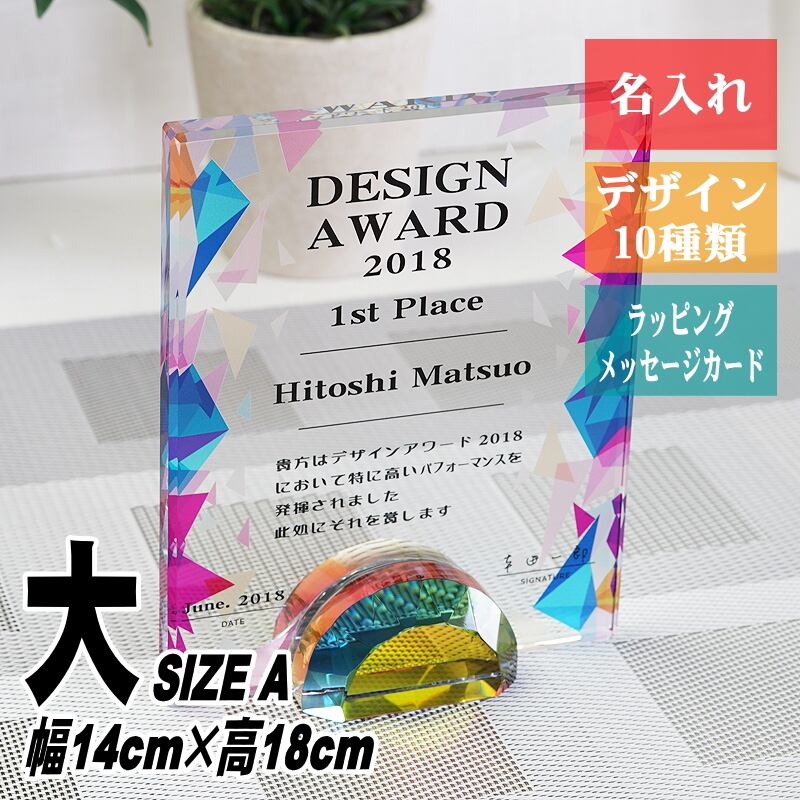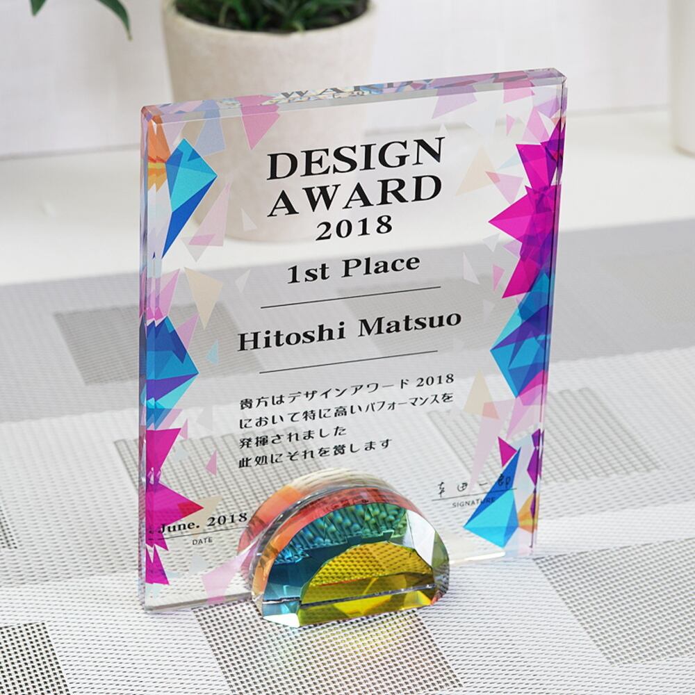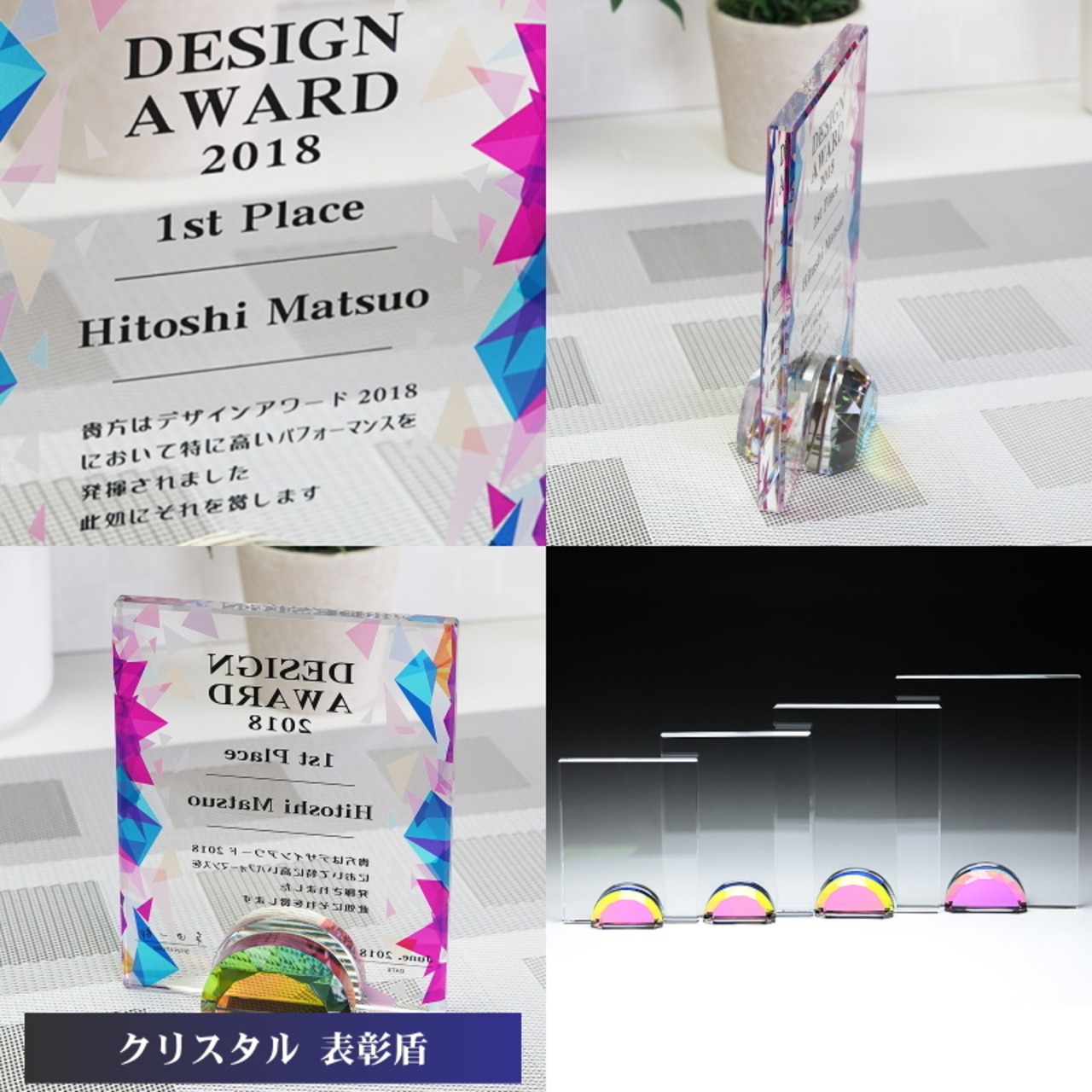 ・ホログラム加工のスタンドがアクセントの多用途に使えるクリスタル盾です。