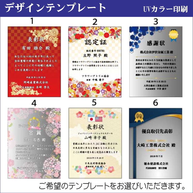 ・周年記念や社内表彰、取引先表彰、認定証、感謝状などに人気です。