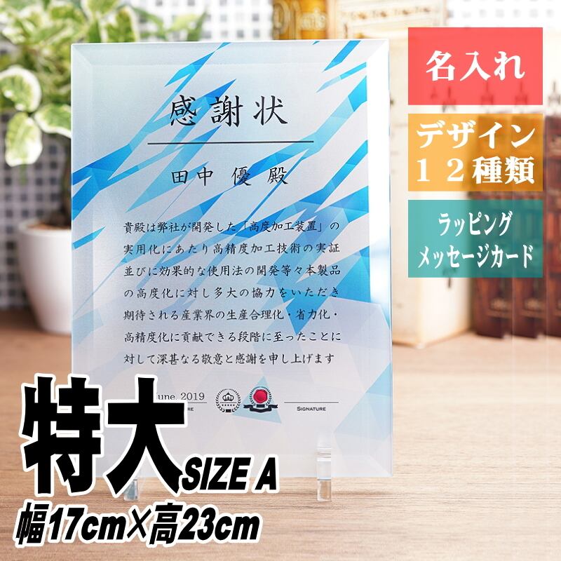 ・彫刻面が広いので感謝状や表彰状、認定証、周年記念、勤続表彰など様々な名入れ記念品として最適です。