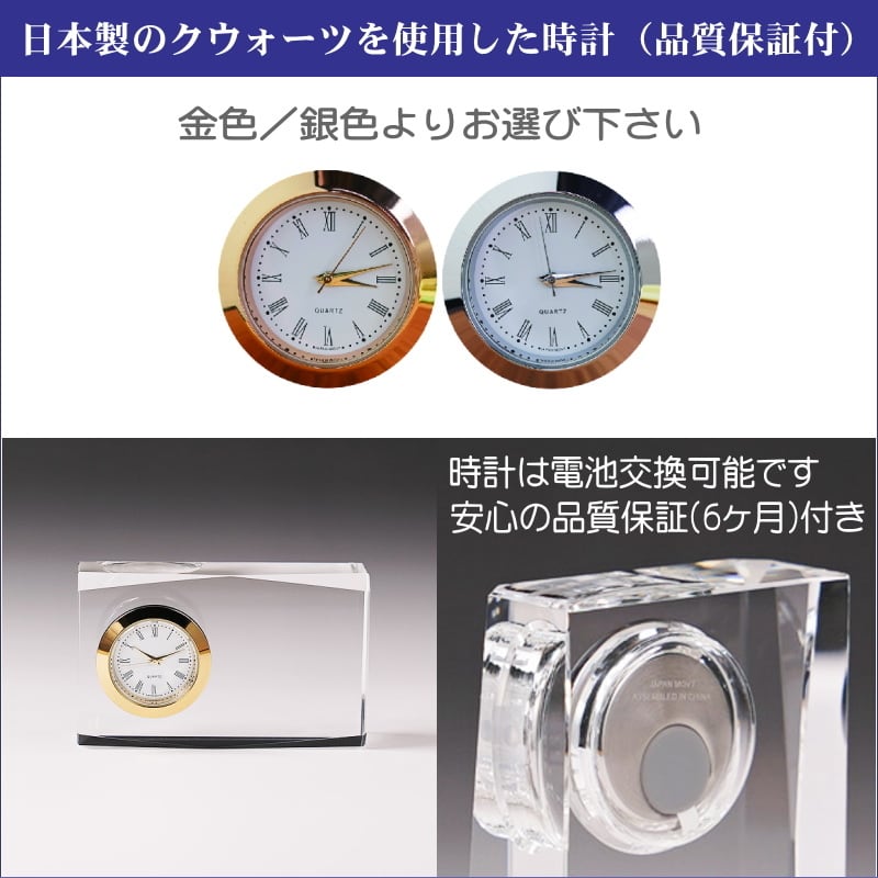 ・前面の角がカットされたシンプルなデザインが美しいクリスタル置時計です。
