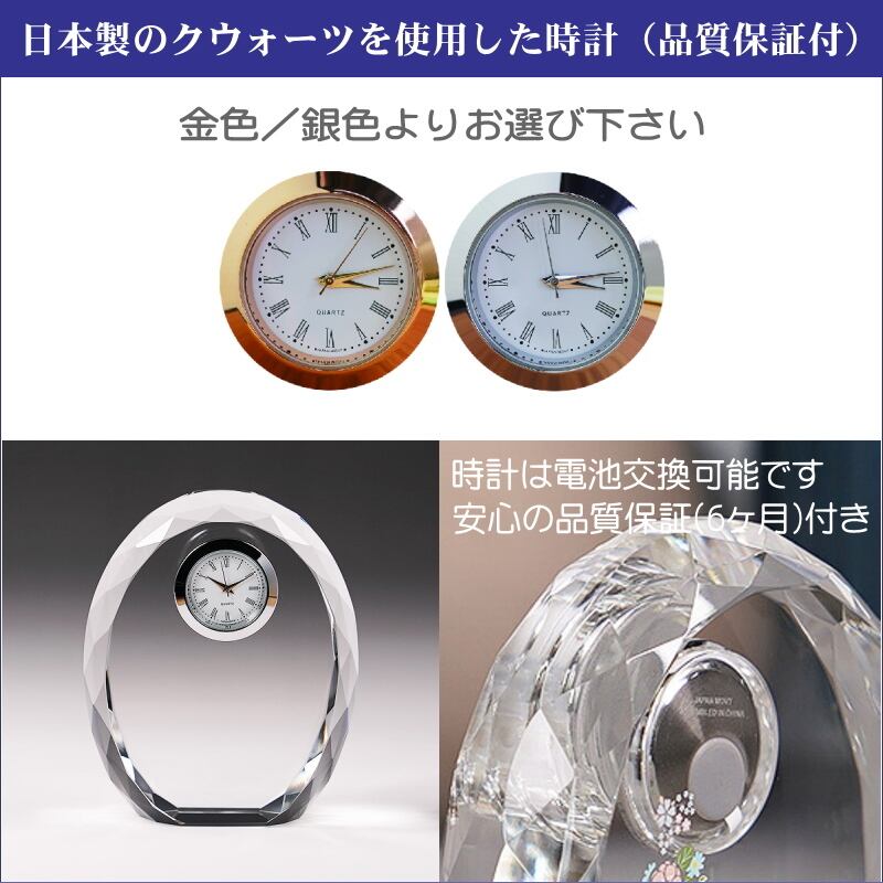 ・手作業で施したダイヤカットが美しく光を反射させる、オーバル形のクリスタル置時計です。
