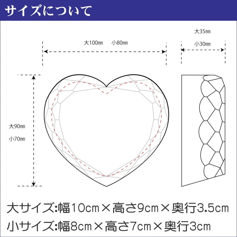 ・側面のダイヤカットがキラキラと優しく光を反射させるハート形のペットメモリアルです。