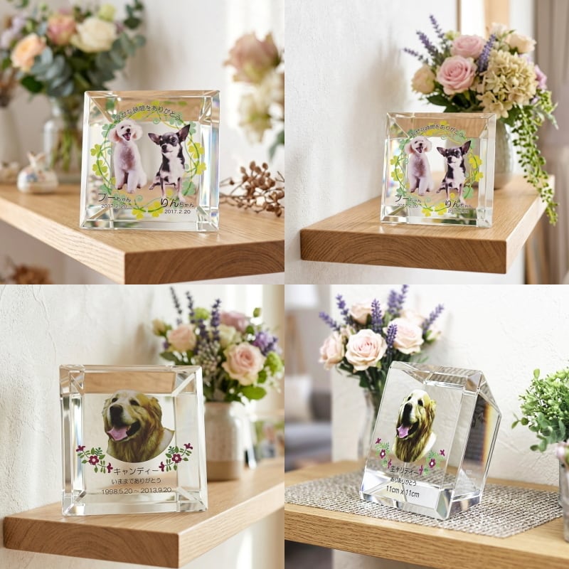 ペット 位牌 クリスタル スクエアカット KP-16(大) 名入れ ペット位牌 仏具 犬 猫 愛犬 愛猫 写 真 メモリアル位牌 ペット仏具 ペット供養 手元供養