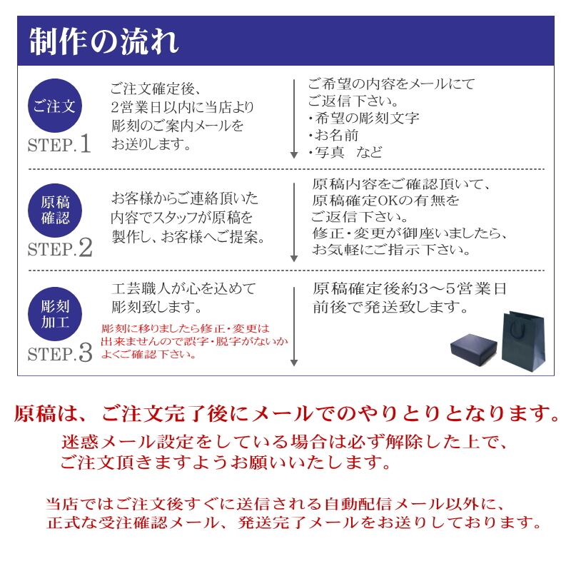 ※ご注文後にお客様と当店スタッフとで彫刻原稿のやりとりを行い、最終原稿の図面をご確認頂き、お客様のご了承をいただき次第、制作・発送となります。