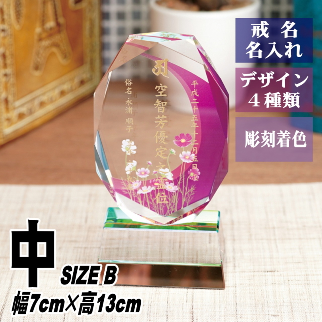 カラー 位牌 名入れ クリスタル KH-11UVS(中) おしゃれ 現代位牌 現代仏壇 手元供養 慰霊 仏壇 夫婦 連名 戒名 供養 49日 法要 法事 慰霊 没日 俗名 戒名彫刻 ミニ仏壇 | 技あり生活