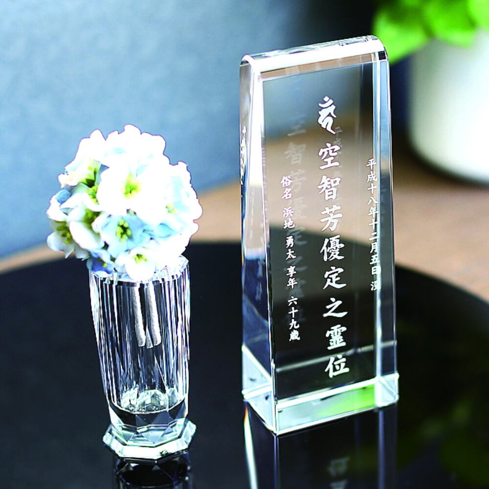 ・オリジナル彫刻で世界でひとつだけの美しいクリスタルお位牌です。