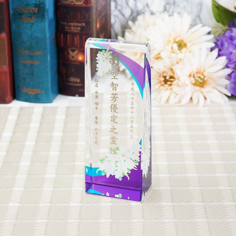 ・クリスタルお位牌にカラーをプラスした華やかなデザインで故人を偲びます。