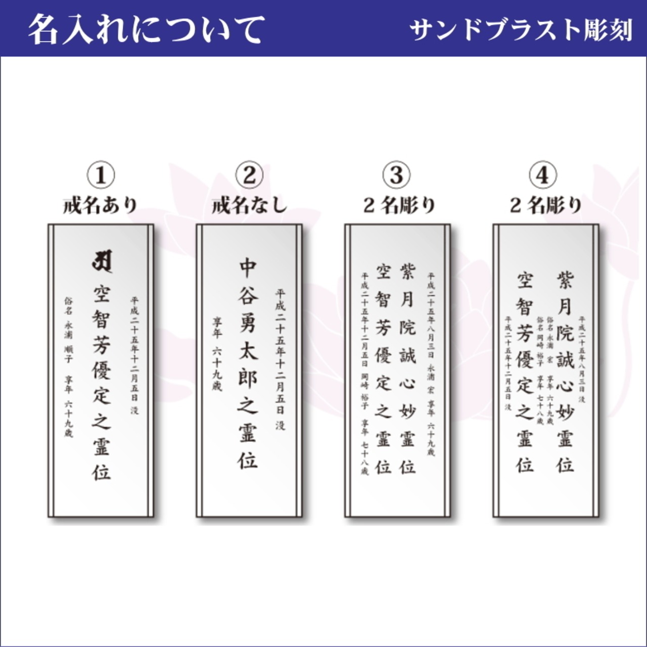 ※ご注文後にお客様と当店スタッフとで彫刻原稿のやりとりを行い、最終原稿の図面をご確認頂き、お客様のご了承をいただき次第、商品の発送となります。