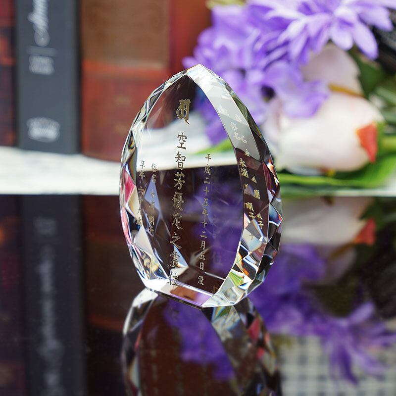 ・オリジナル彫刻で世界でひとつだけの美しいクリスタルお位牌です。