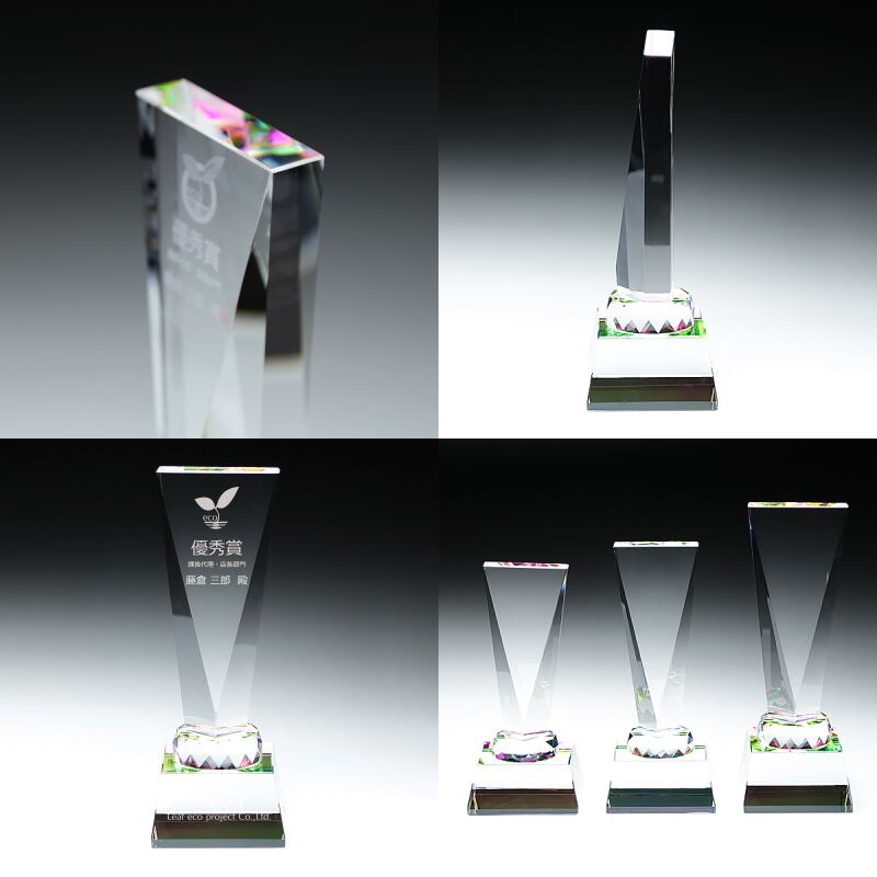 ・V字カットが特徴的な美しいクリスタルトロフィーです。