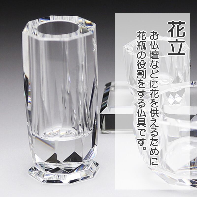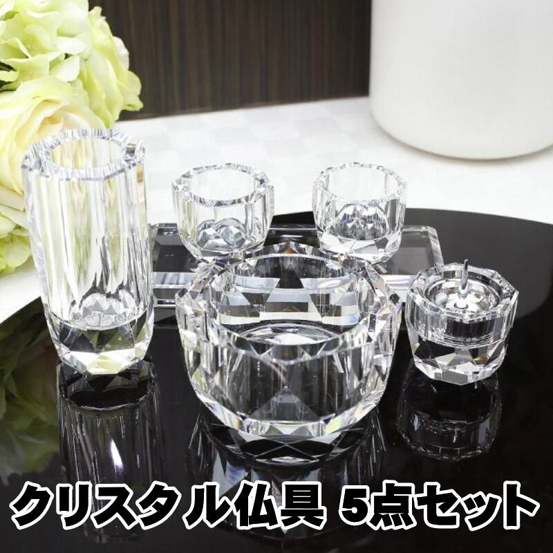 ・クリスタルの花立、香炉、燭台、茶湯器、仏器の5具足セットです。