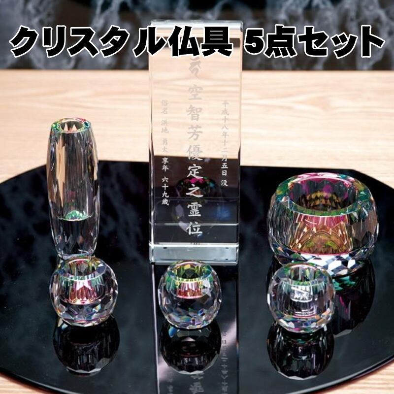 ・クリスタルの花立、香炉、燭台、茶湯器、仏器の5具足セットです。