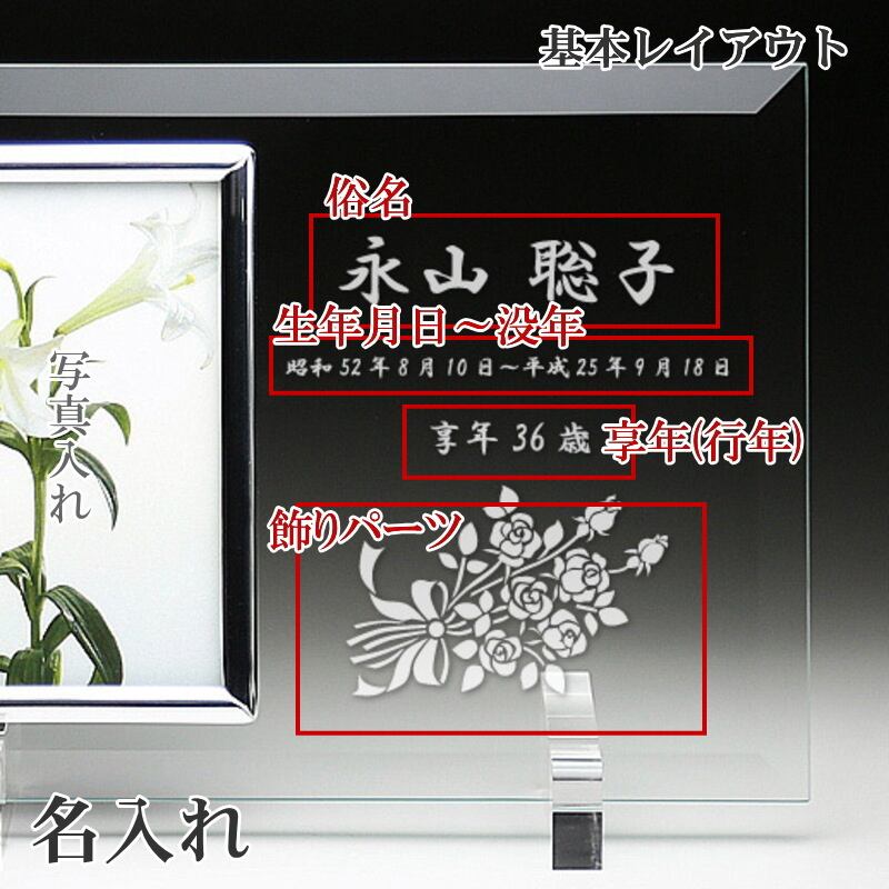 ・最先端のレーザー光線技術で戒名を彫刻したフォトフレームです。