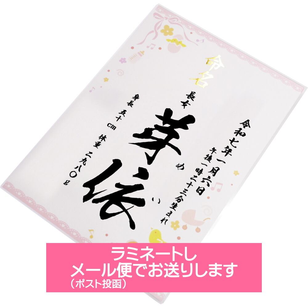 命名書 代筆 手書き 風フォント ピンク 命名紙 女の子 A4 ラミネート 出産祝い 出産内祝い お七夜 / お名前+生年月日+出生時刻+身長体重